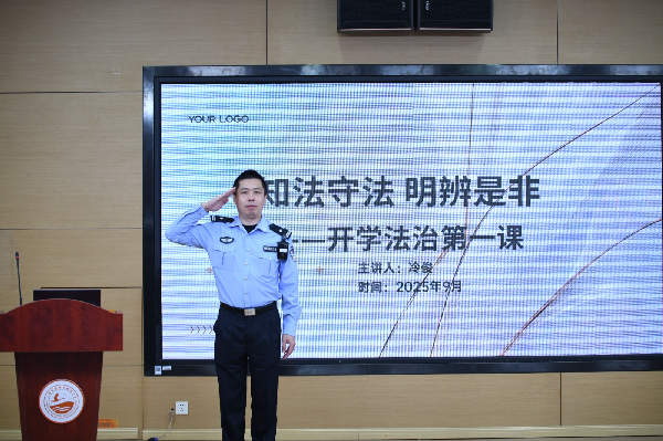 此外,冷俊警官还围绕“法治小卫士的行动”,鼓励学生从“监督身边不文明行为”“宣传法治小知识”做起,践行法治理念;通过“法治教育的长远意义”,强调法治素养对个人成长、社会和谐的重要性;以“法治课堂的实践应用”,建议学生将讲座内容转化为日常行为准则;最后在“法治教育的未来展望”中,寄语大家争做 “懂法、敬法、守法”的新时代好少年。